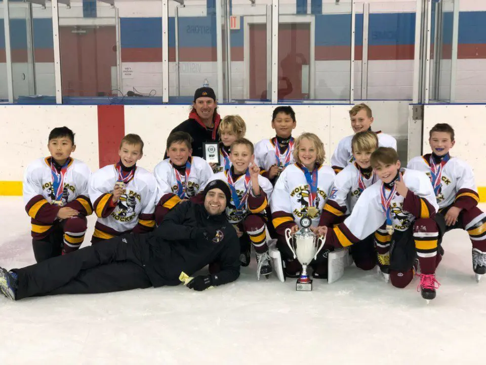 The Hoffman Estates Wolf Pack Squirts capped off a hard-fought tournament by going undefeated and winning the Spartan Cup. Although challenged by playing three travel level teams the young men came together and each contributed with their unique abilities and passion for excellence. The team was led by shut down defense from by Jack Scanlan, Will MacDonald, Justin Weber and James Mcgreal aiding goaltender Eli Brown in stopping over eighty shots while allowing only 13 goals. On offense, the aggressive forechecking of Liam Sinsabaugh, Kevin Koo, and Grayson Jordan and the finesse of Josh Warren, Vojta Lukas and Nathaniel Choi led the Wolfpack to a tournament-high 24 goals. All players contributed on the offensive side with either a goal or assist. As the players accepted their trophy they circled the ice with “We are the Champions” being sung around the arena. As is custom for the Wolf Pack they ceremoniously thanked their fans as they exited the ice by raising their sticks and saluting the wonderful and supportive parents and siblings. Trophies were won, medals were received, however, most of all lifelong memories were made. Great work WolfPack!